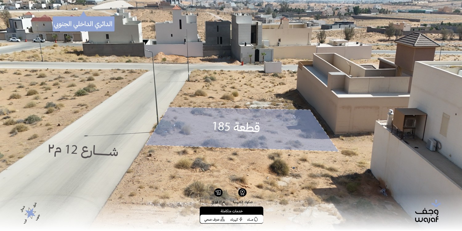 قطعة رقم ١٨٥ بصك إلكتروني وإفراغ فوري، في مخطط النخبة (اللسيب) داخل حي سكني قائم بمساحة مميزة تفتح على شارع ١٢م