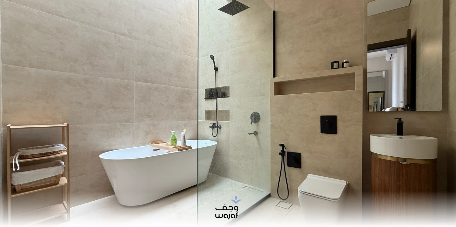 -حمام فندقي فاخر بتشطيبات عالية الجودة.