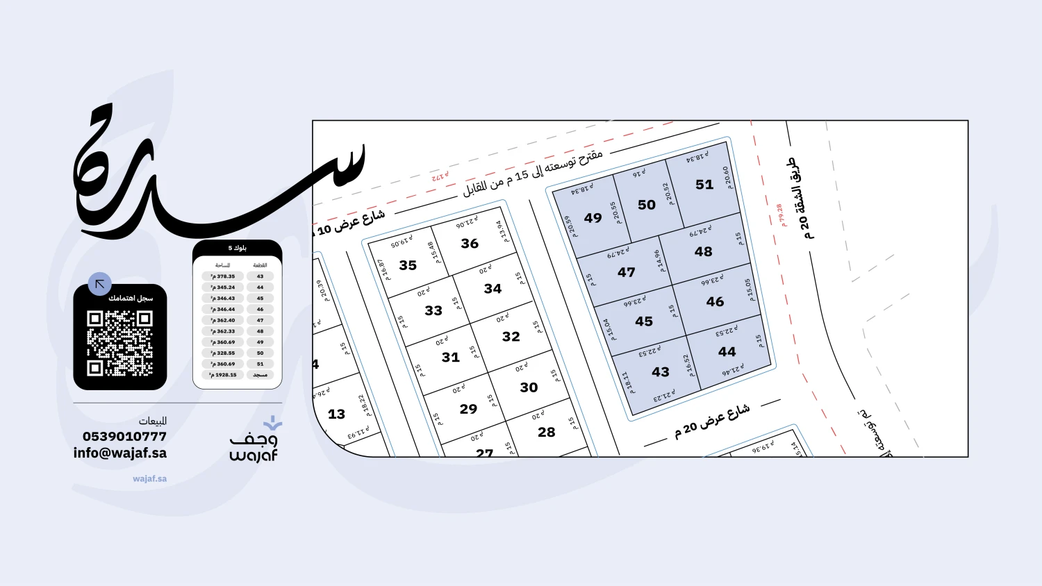 قطعة رقم 45,تأتي هذه القطعة داخل مخطط سدرة المميز بالصك الإلكتروني والإفراغ الفوري والبنية التحتية المتكاملة والقطع المحدودة التي تجعل منه بيئة مثالية ومستقبل واعد..